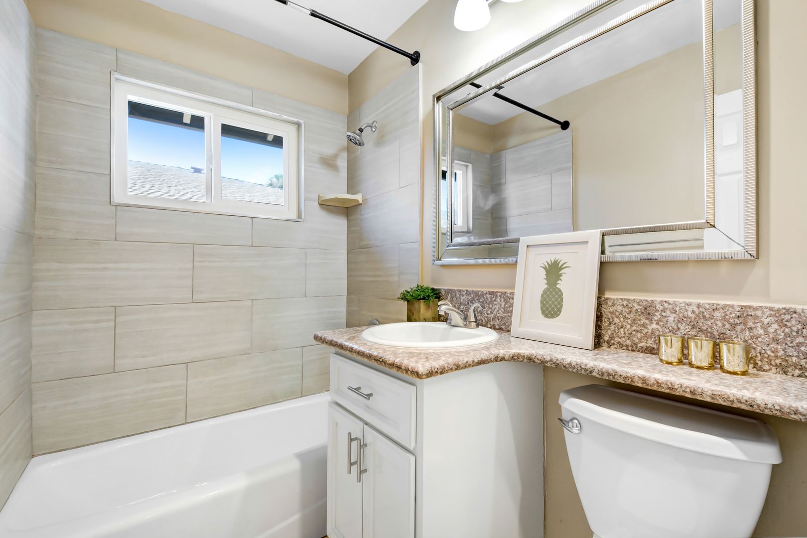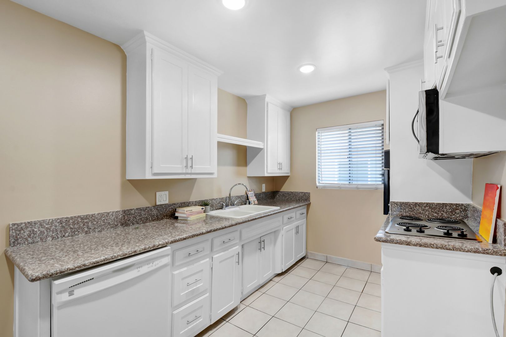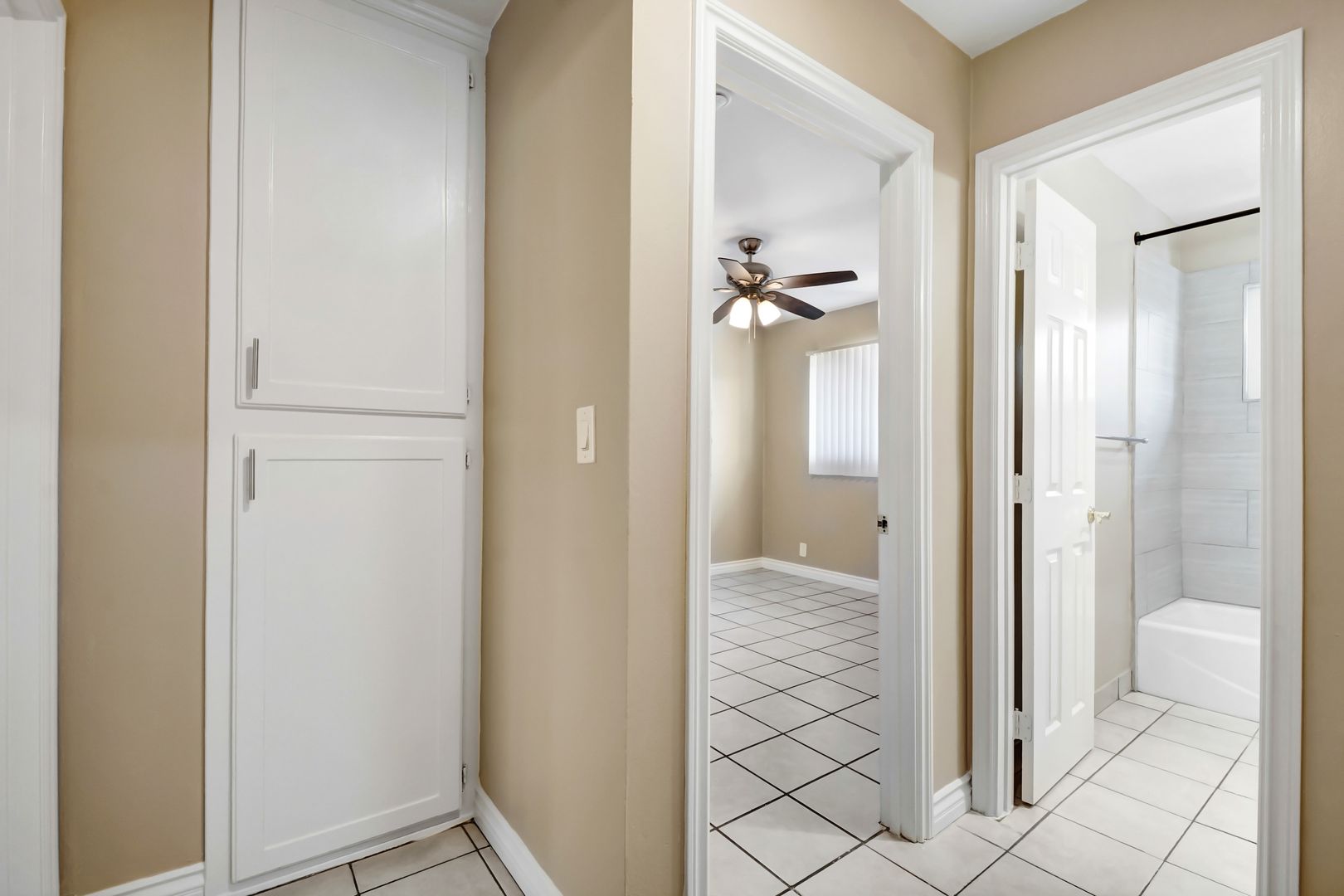 This apartment offers a comfortable living space with two spacious bedrooms and a full bathroom. The unit is freshly painted and features new blinds enhancing its aesthetic appeal. Elegant tile flooring adds style while being easy to maintain.
